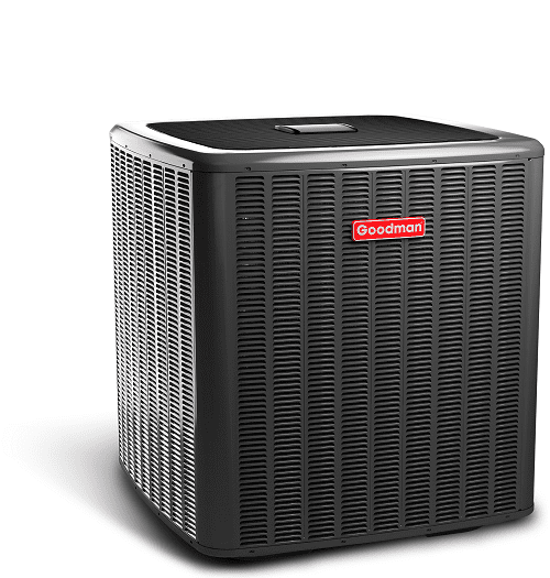 Goodman 3-ton, 2-stage, 16 SEER, split system air conditioner condenser with ComfortNet Communications. This product line has performances up to 17 SEER.